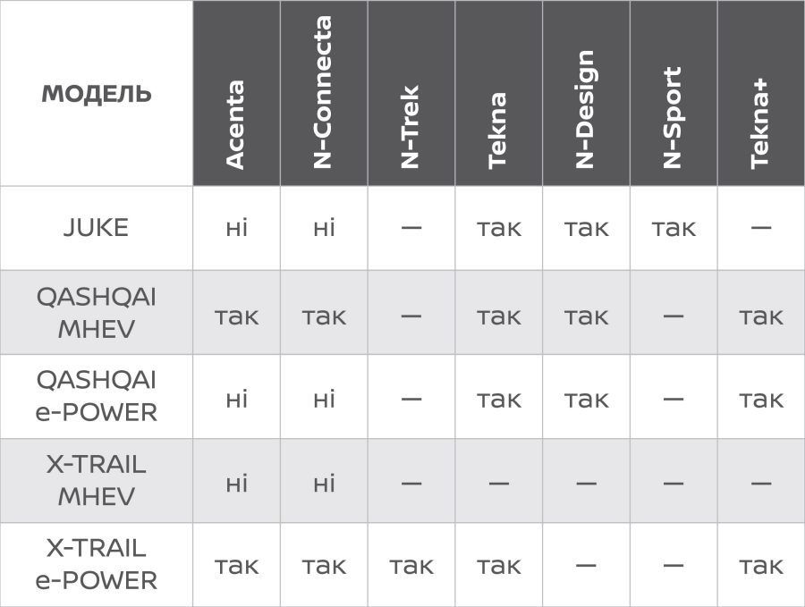 Комплектації, на які поширюється партнерська програма Nissan та OTP Leasing